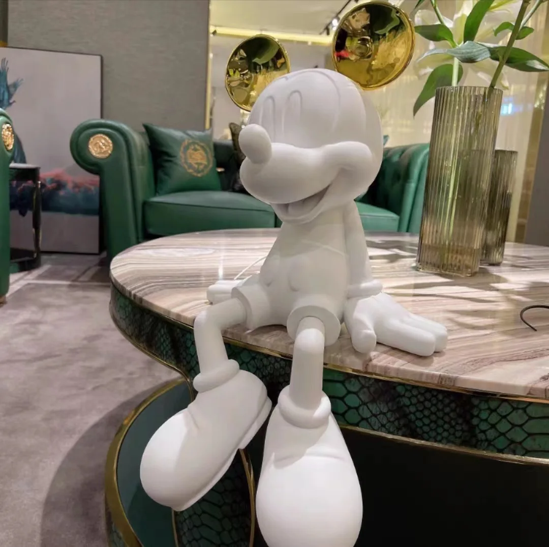 mickey mouse resin decoration, luxury disney home decor, modern cartoon figurine, mickey statue gift, mickey sitting sculpture, resin decorative ornament, living room decor mickey, disney-inspired resin art piece.